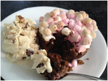 I have been known to scarf done tubs of ice cream, molten lava chocolate cakes and sometimes even mini microwave cakes on these occasions. Today I was sold on brownies. Specifically these mini delectable s’mores brownies.