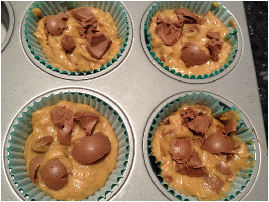 • Reserved chocolate chunks for top giving nicer presentation and it would have would have worked mind you had my muffin liners not been so full 😉