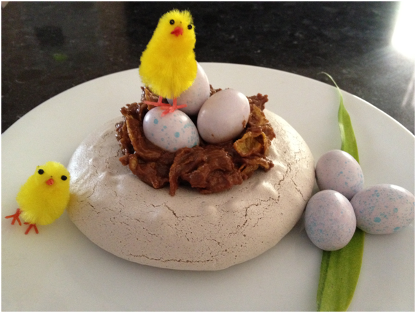 Ladies, Gentlemen, Bunnies, Chickens and Children, I present to you: A Chocolate Pavlova Bird’s Nest 🙂