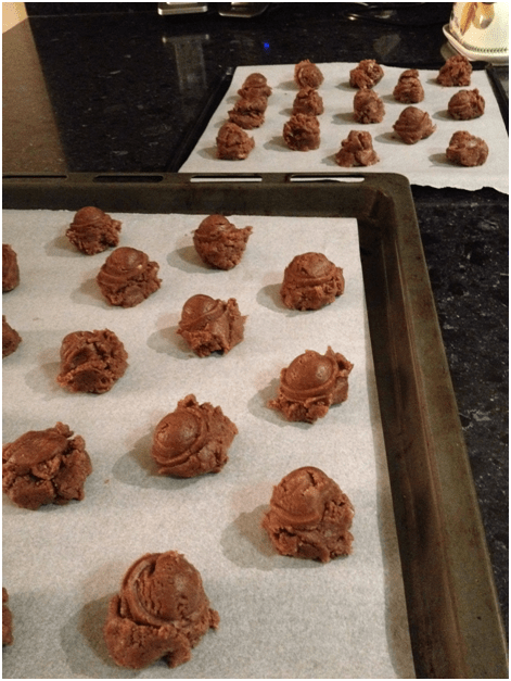 - Using a tsp, drop dollops of dough onto the baking sheet, keep them 4-ish cm apart