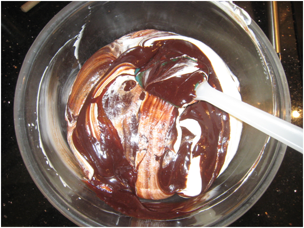 Adding the chocolate blend to the cream