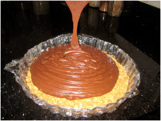 9. When it is all smoothly blended pour it over the crumbs