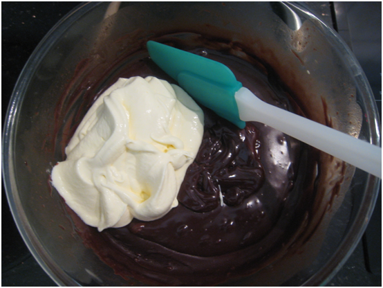7. Fold 1/3 of the cream into the chocolate mixture