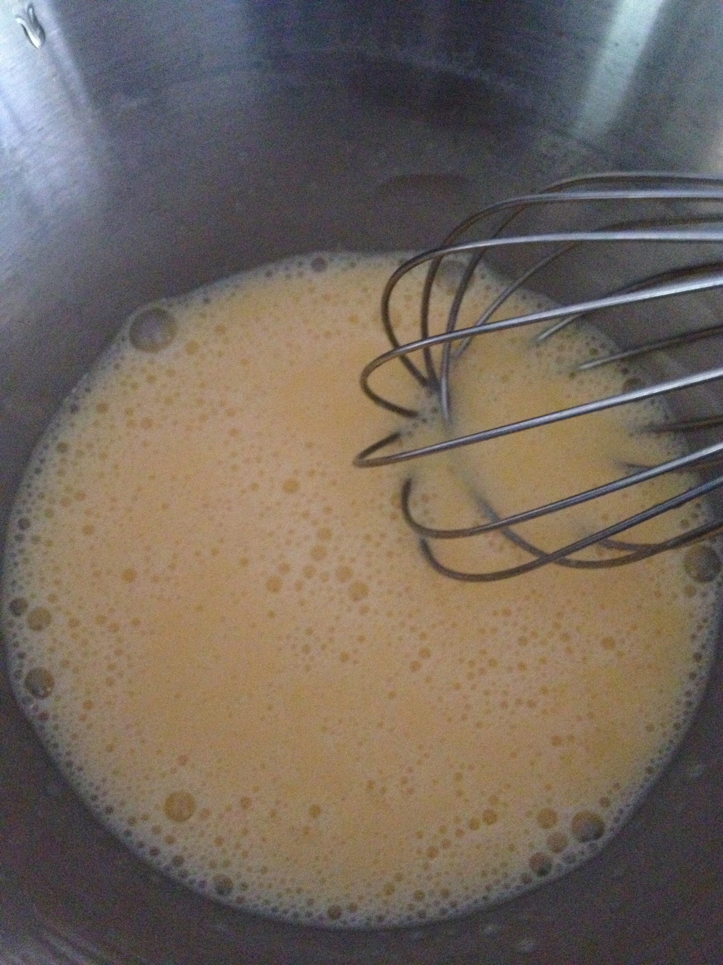 - In a slow stream, whisk in slightly cooled syrup, whisking constantly to avoid scrambled eggs