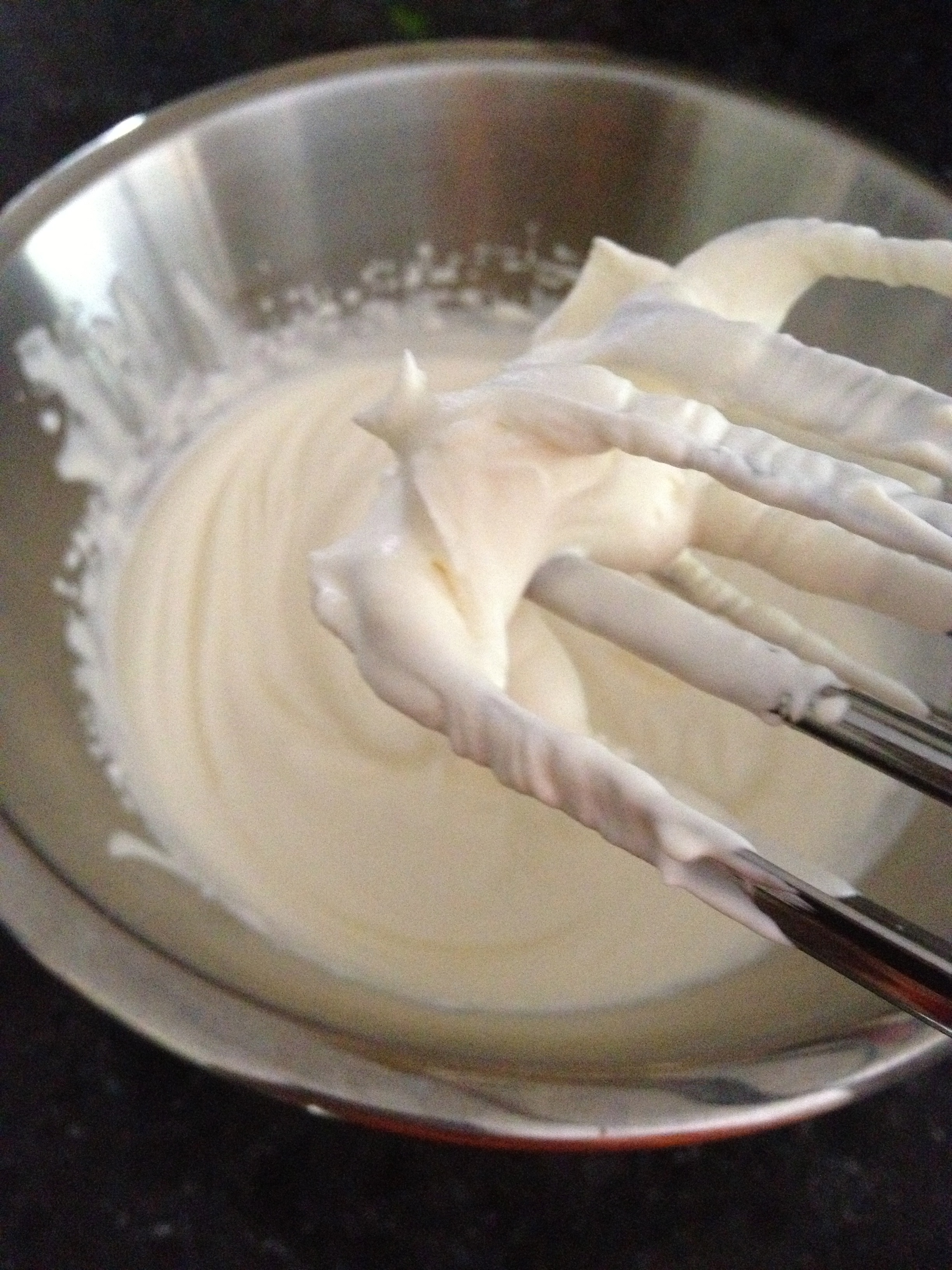 - Beat thickened cream until soft peaks form
