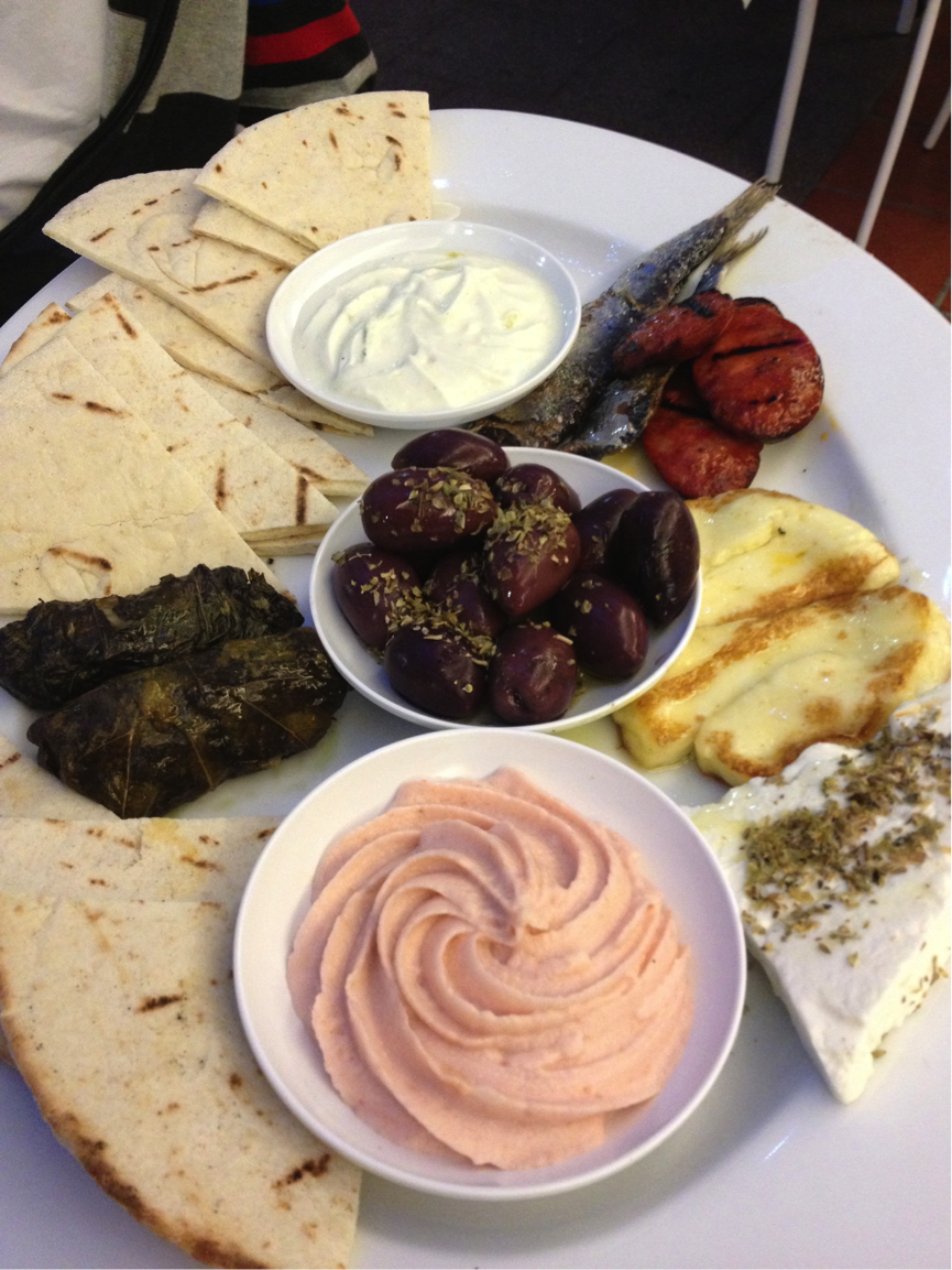 Then we move on to the Dolmades. I have never tasted anything like this before, the vine leaves were salty and the mixture of vegetables and rice was sweet but savoury at the same time. I know, I am so nonsensical! But it is true and they were delicious – I felt so cultured eating them 😉