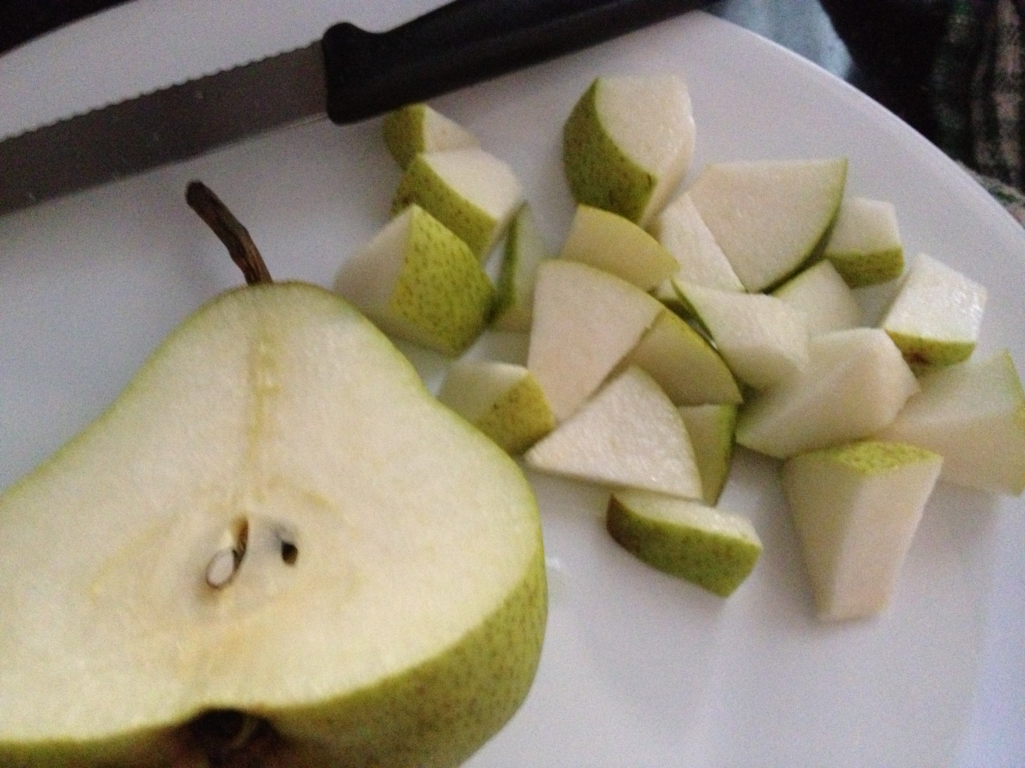 • Another note on personal preference – this recipe has the pears in bite-size pieces, whose aesthetic appearance I rather liked, but my mum thought slivers would look more classy (commonly seen in parmesan rocket pear salad) – again, totally up to you πŸ™‚