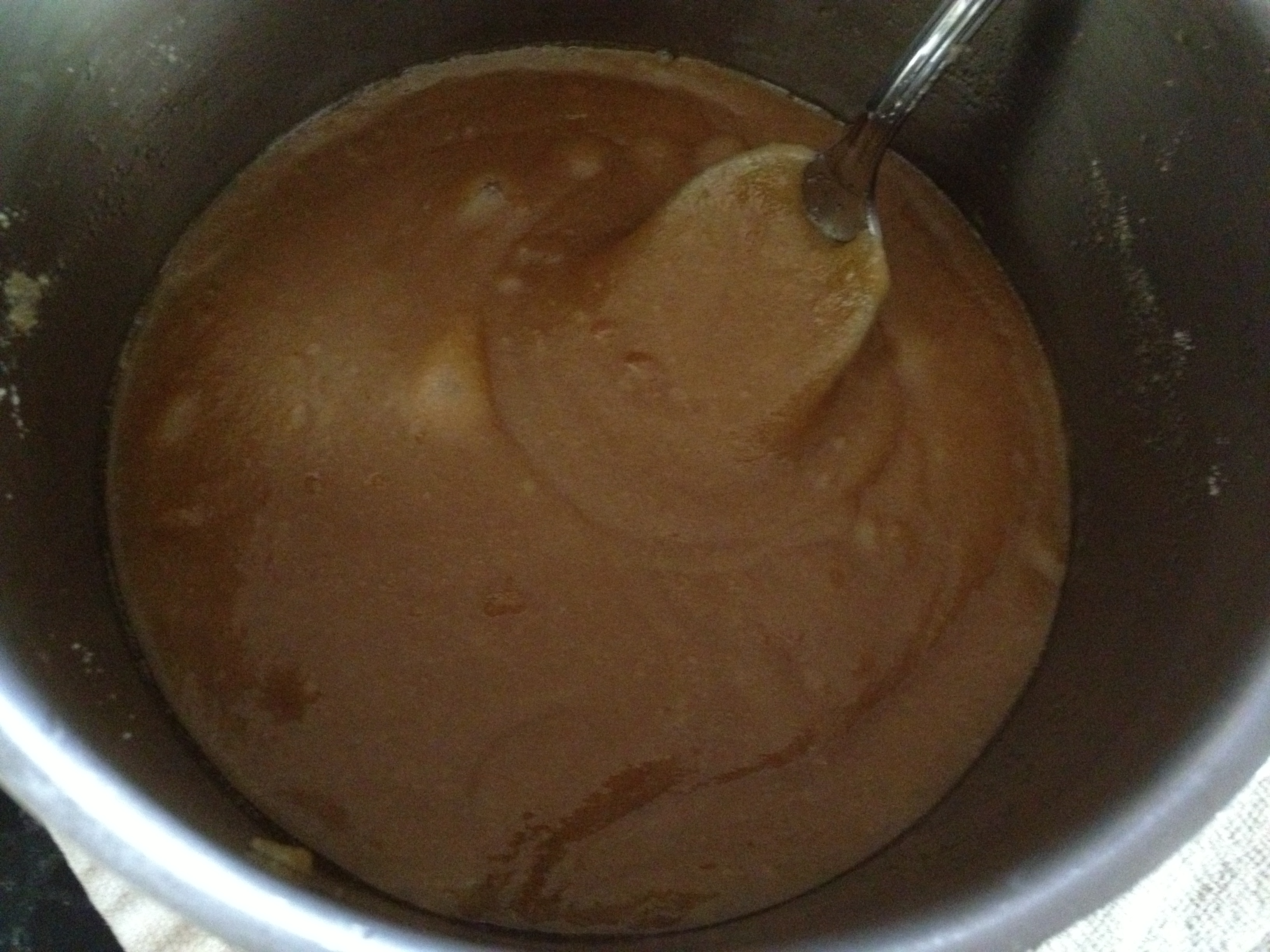 3. In a saucepan, melt butters and sugars together (the butter takes longer, so the sugar caramelises around it)IMG_0398