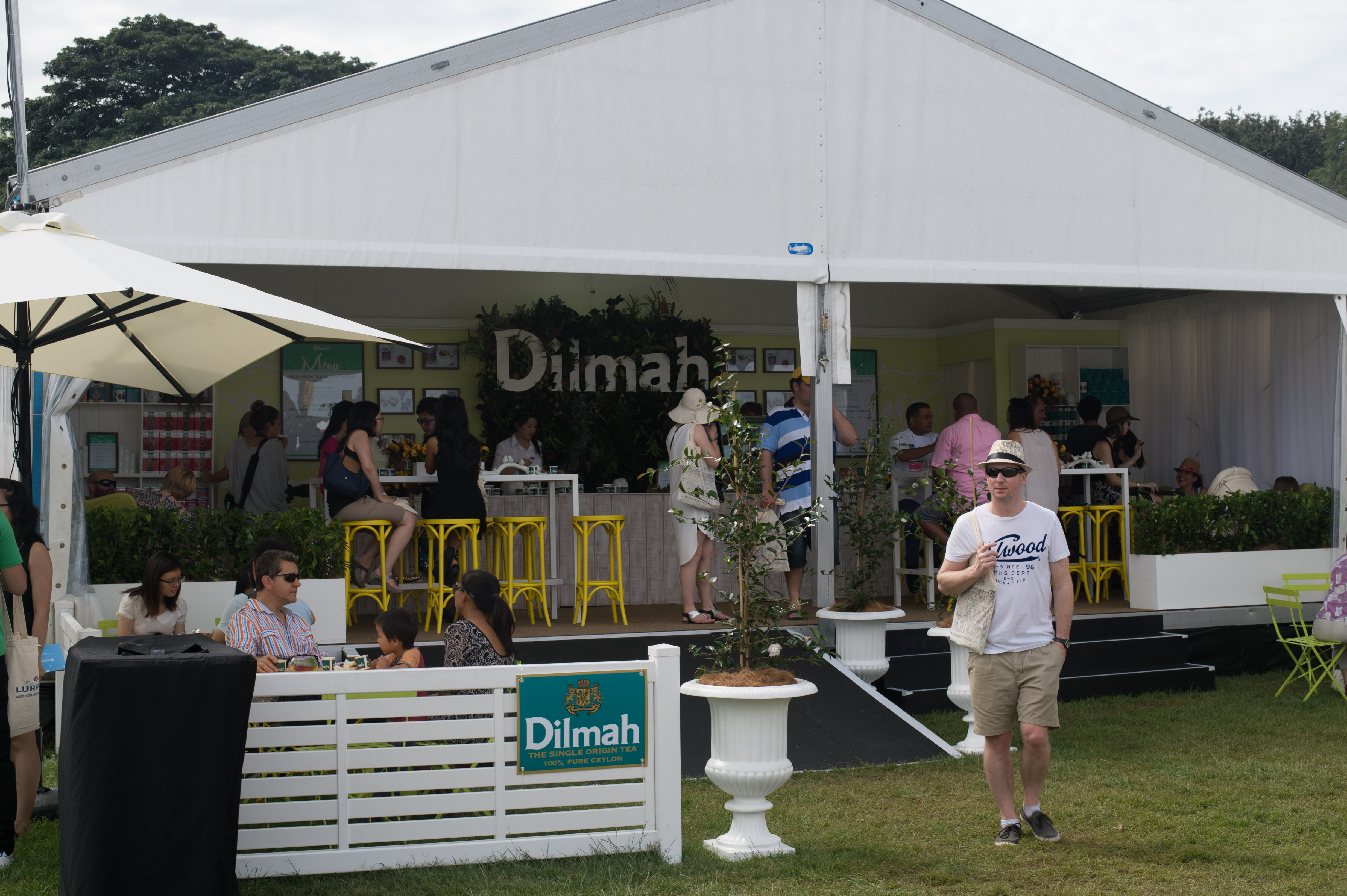 And soon it was time to head back to the massive Dilmah tent. Beautifully decorated with green leaves around it, the friendly staff were giving out free goodie bags to passer-bys and those who had stopped to sample some exotic teas. We were greeted then on entrance byย Peter Kuruvita! My heart stopped for a second, but I am glad I recovered, because fainting on idolised chefs isย not my idea of a good first impression ๐