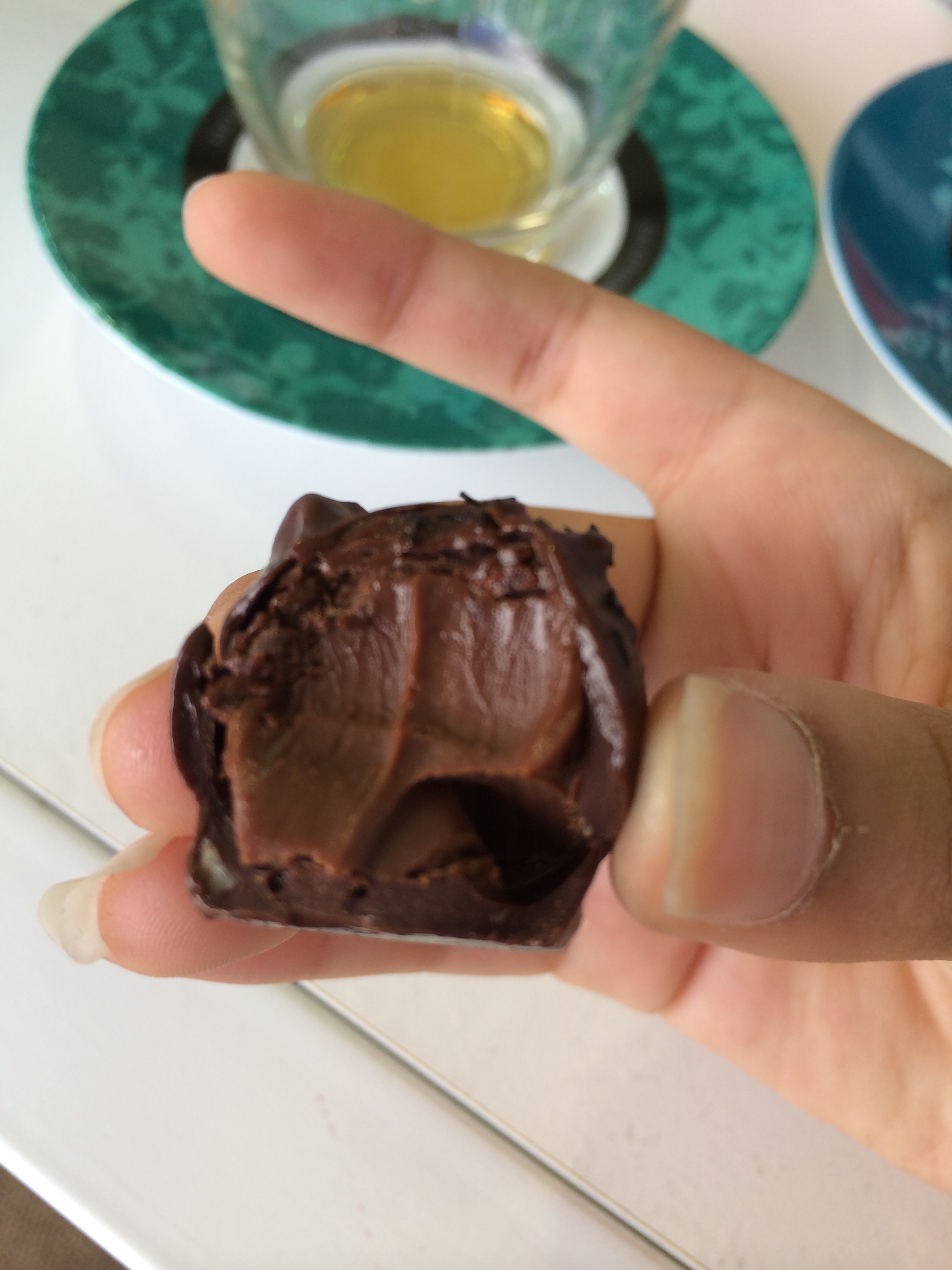 We now got an assortment of chocolate and teas placed in front of us! After trying theย Rose with French Vanilla,ย which Peter told us used a stronger tea because of rose’s intense flavour, we ate the Dilmah Roseย Tea Infused Flavoured Jelly dipped in chocolate with it. Soft and sweet, it complimented its drink component perfectly, and I was in heaven. It was his take on a turkish delight ๐