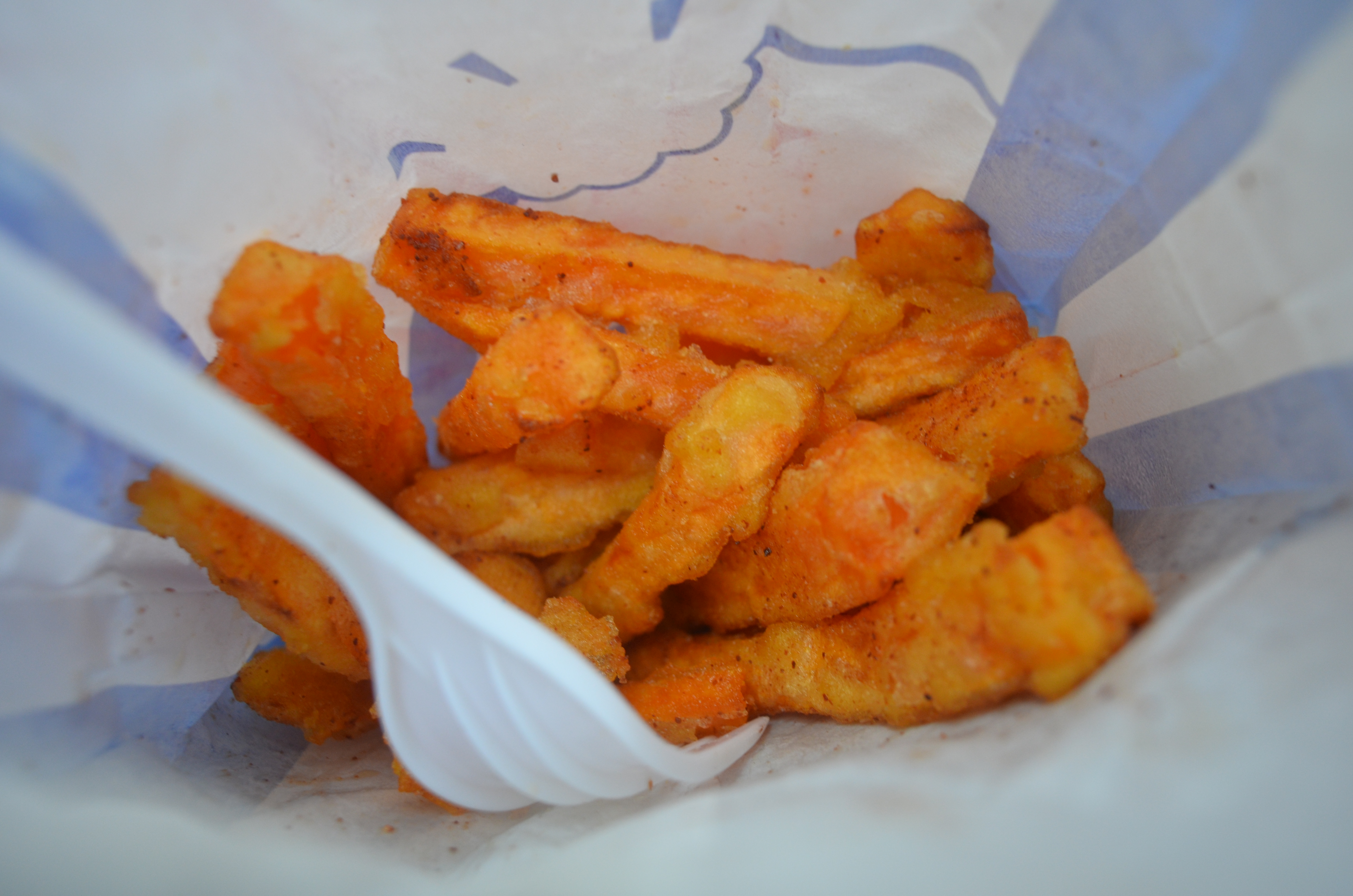 But these fries were crispy on the outside, and very soft on the inside! Score! They were sweet and delicious and I loved the vibrant colour 🙂