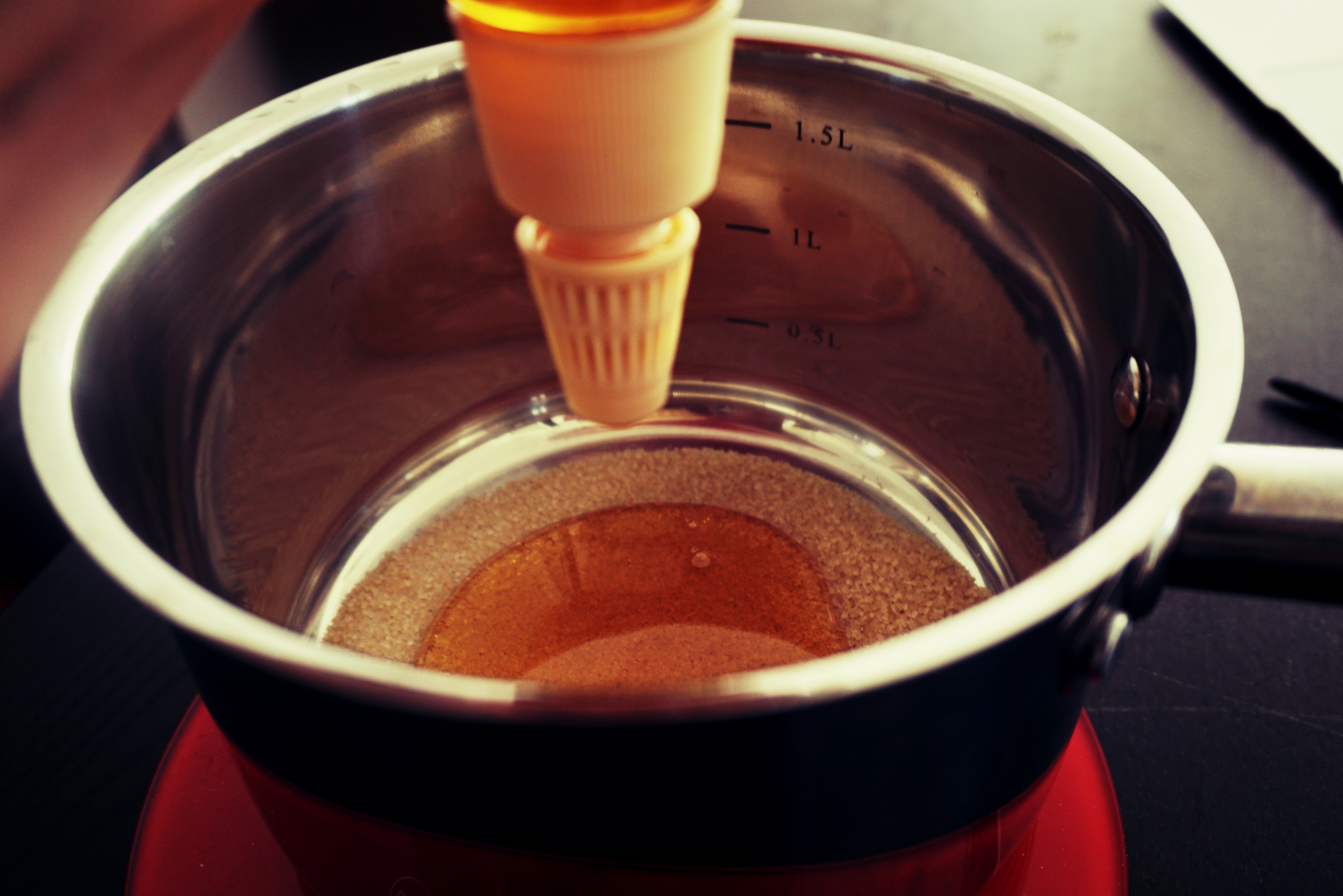 Step 1: In a heavy saucepan, melt the sugar and honey on medium heat. Let it cool
