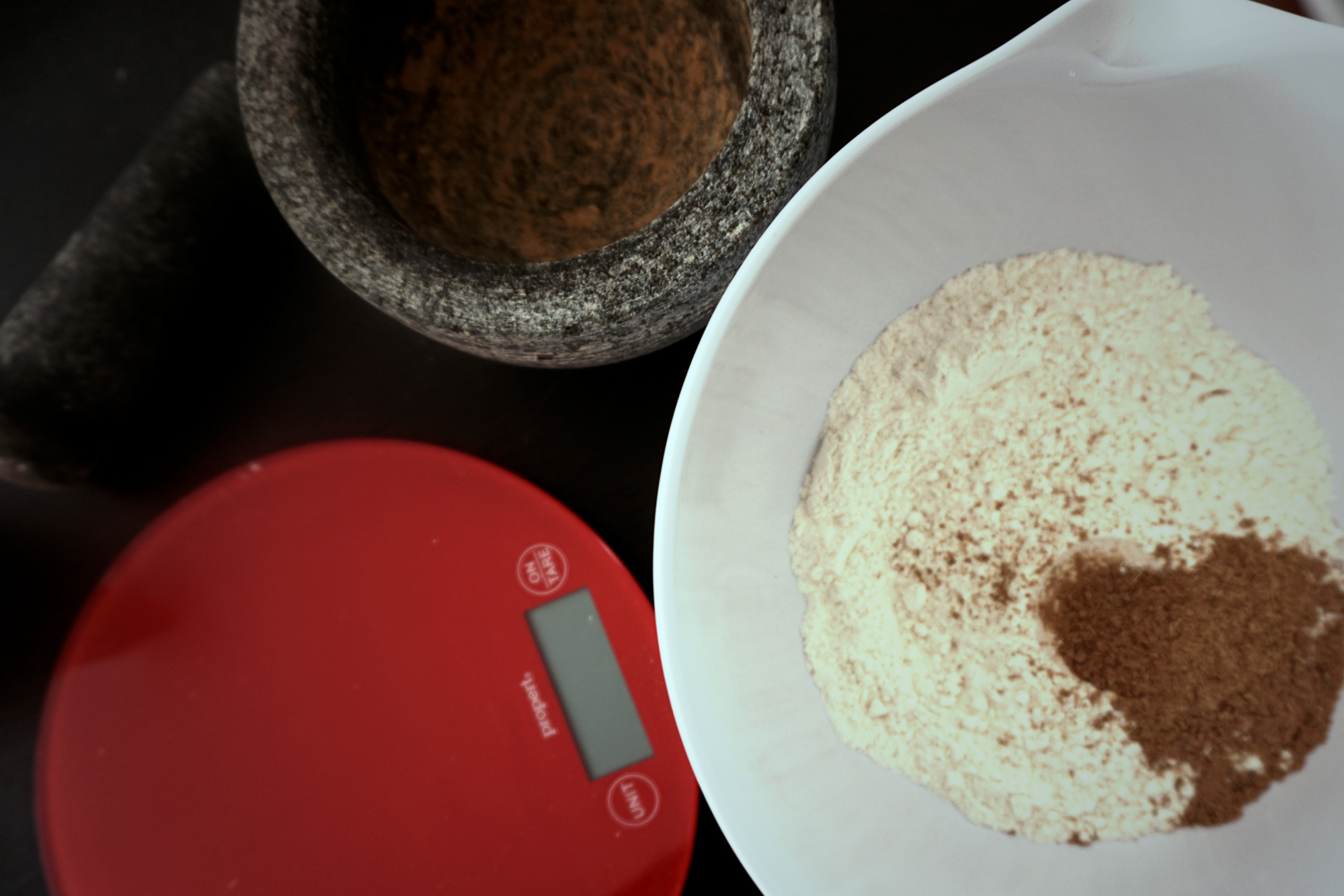I love the photo of a mortar and pestle. I never think to grind dessert spices in one… but why not. It’s a delicious looking sweet treat..