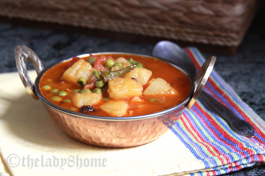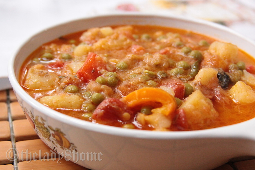 So this time, I made sure it’s a vegetarian recipe. I have a sweet tooth when it comes to desserts but my fingers stick together when it comes to baking. So I stick to savory food. It’s potatoes and peas curry.